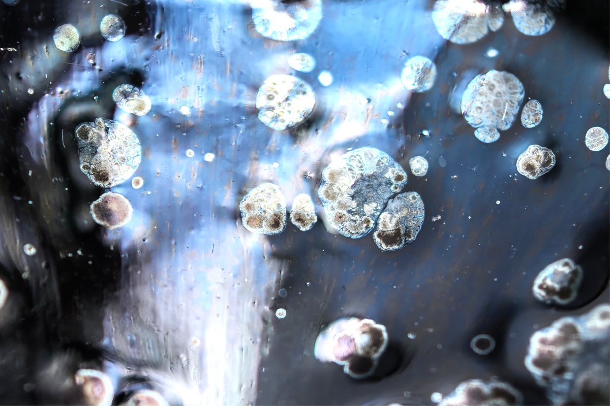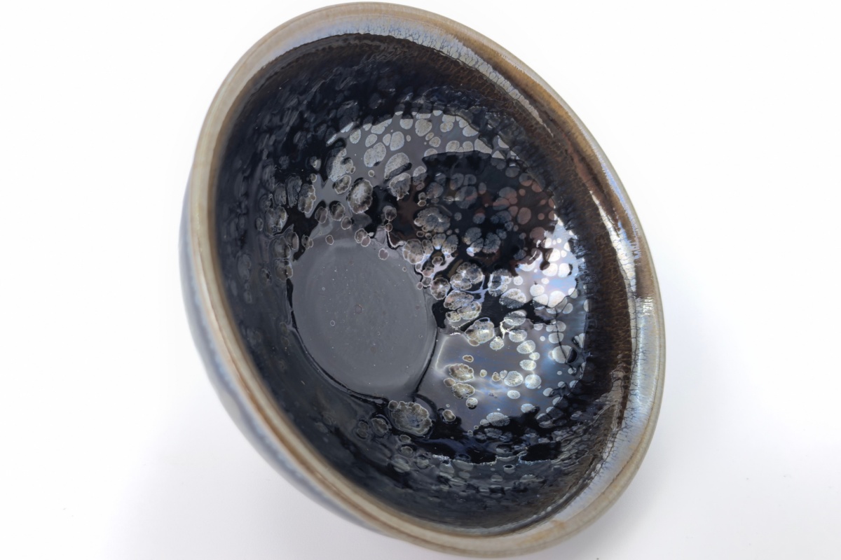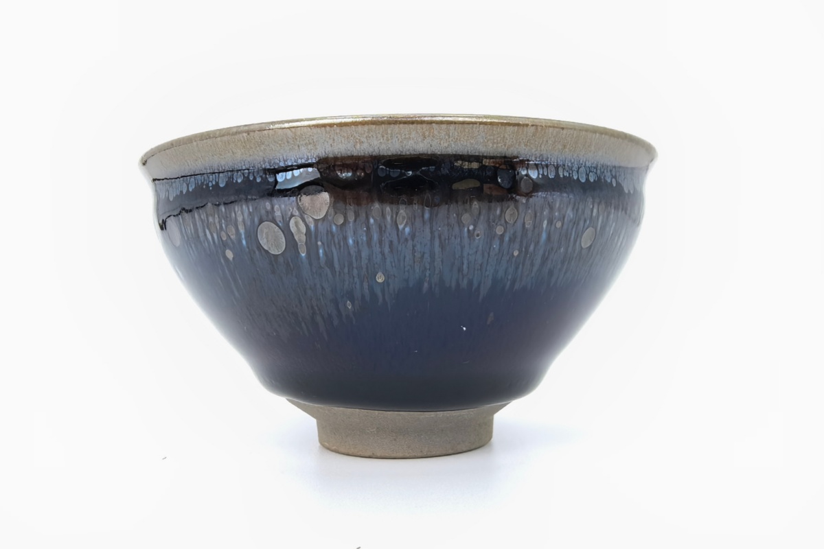 This Jian Zhan tea bowl, with its deep blue glaze reminiscent of the ocean, features dotted patterns that resemble the mesmerizing dance of bioluminescent creatures and shimmering light in the depths. It seems to capture the enchanting glow and elusive aura of that lost civilization.