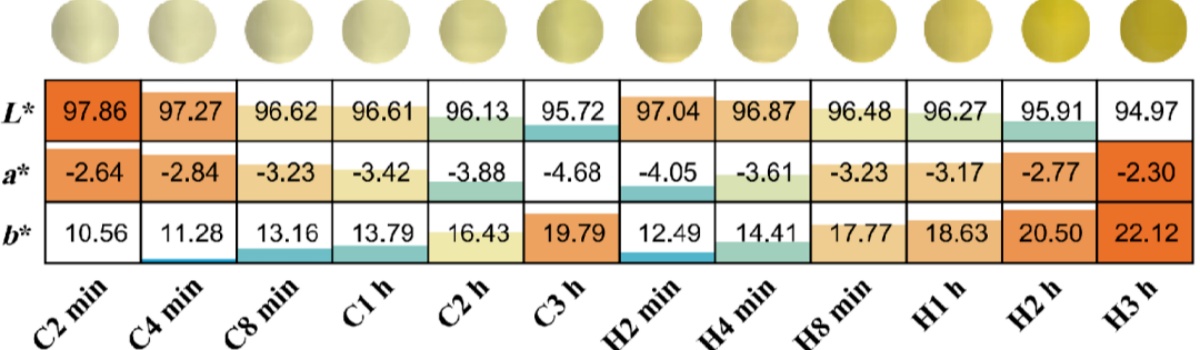 In contrast, during the same hot brewing period, the *a* value increased from -4.05 to -2.30 (indicating a loss of green colour). It's as if the chlorophyll is given a "protective shield," allowing the tea to maintain its vibrant green hue.