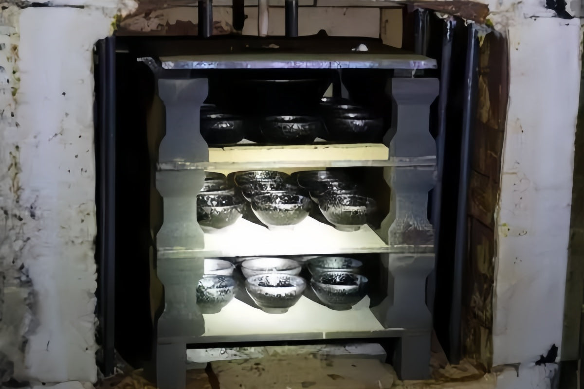 This enables a wider range of glaze effects, including vivid hare’s fur, oil spots, tea-dust glaze, persimmon red, and even rare iridescent and colorful finishes.